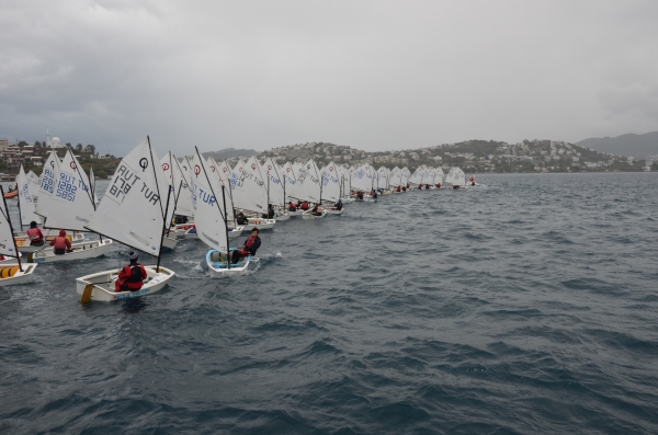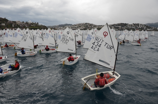 Bodrum Belediyesinin destekleriyle Türkiye Yelken Federasyonu tarafından Bodrum’da düzenlenmeye devam eden TYF Yarıyıl Kupası ilk gün yarışları, esen rüzgar ve yağışın da etkisiyle sporcuların büyük mücadelesine sahne oldu.