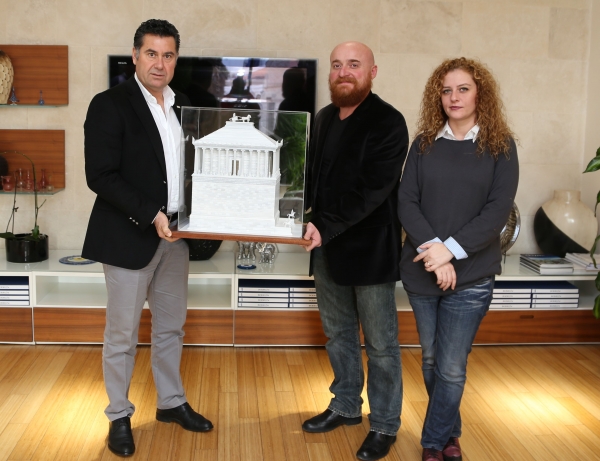 Bodrum’un tarihi dokusunu ve doğal güzelliklerini yansıtmak için hazırlanan Bodrum Kültür Park projesinde yer alacak olan Mousoleum’un minyatür bir çalışması, Bodrum Belediye Başkanı Mehmet Kocadon’a sunuldu.