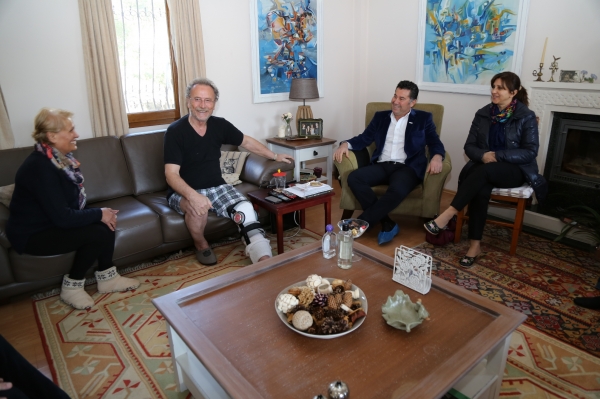 Bodrum Belediye Başkanı Mehmet Kocadon ve oda başkanları, geçtiğimiz günlerde geçirdiği rahatsızlık nedeniyle operasyon geçiren ve evinde istirahat eden Hüseyin Anıl'ı ziyaret etti.