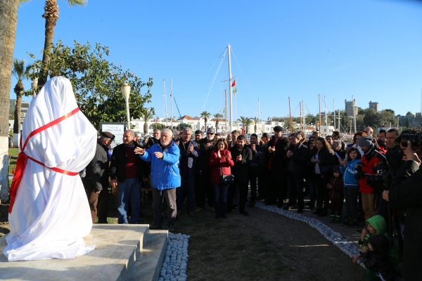 Açılış töreni öncesi konuşma yapan Meclis Üyesi Güneri Günaydın, "Erdoğan Yavaş'ın sponsorluğu, Bodrum Belediyesinin katkılarıyla süngerciler adına yapılan bu heykelin Bodrum için hayırlı olmasını diliyorum." dedi.