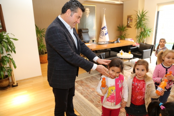 Bodrum Neyzen Tevfik Caddesi’ndeki Güler Mustafa Kızılağaç İlkokulu Anasınıfı Öğrencileri, öğretmenleriyle birlikte kurumlara yaptıkları ziyaretler kapsamında Bodrum Belediye Başkanı Mehmet Kocadon'u da makamında ziyaret etti. Minik öğrencileri ilgiyle karşılayan Başkan Kocadon, öğrencilerle bol bol sohbet ederek şakalaştı.
