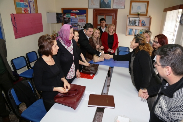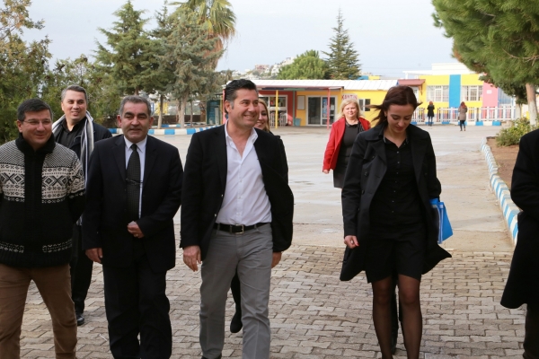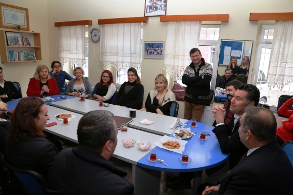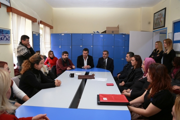 Okul Müdürü Ediz Çetin, Müdür Yardımcısı Pınar Öztürk, Okul Aile Birliği Başkanı Gülçin Genç ve Okul Aile Birliği Başkan Yardımcısı Deniz Çetinkaya tarafından karşılanan Başkan, beraberindekilerle birlikte okulu gezerek öğretmenlerle sohbet etti. Mehmet Kocadon ziyarette, okul yöneticileri ve öğretmenlerin yaşadıkları sıkıntıları dinleyerek öneri, istek ve talepleri ile okulda düzenlenen sosyal projeler hakkında da bilgi aldı. “Kitap Okuma Bayramı”, “En İyi İstiklal Marşı Okuma”, “En Temiz Sınıf “ gibi projelerin yanında okulun müdür yardımcısı Pınar Öztürk'ün sigara kullanan öğretmenlere yönelik yaptığı “Dumansız Hava Sahası” gibi projeler Başkan Mehmet Kocadon'un ilgisini çekti.