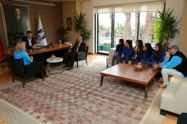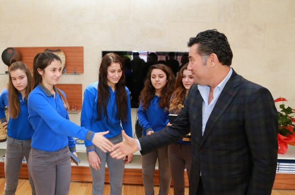 BAŞARILI VOLEYBOLCULAR, BAŞKAN KOCADON’U ZİYARET ETTİ
