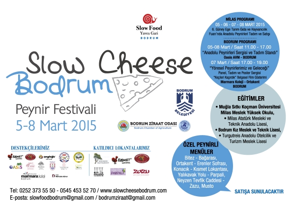 “Slow Cheese Bodrum” Peynir Festivali, 5-8 Mart 2015 tarihleri arasında eş zamanlı olarak Milas ve Bodrum’da düzenlenecek.