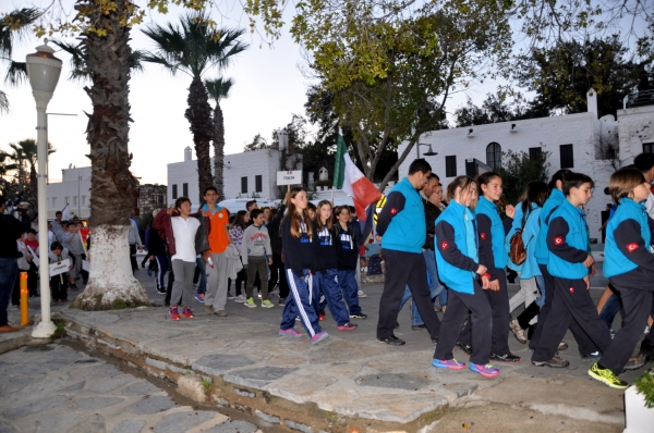 Aynı günün akşamı ise Bodrum Milta Marina’da bir araya gelen sporcular, aileleri ve antrenörleri ile birlikte kortej yürüyüşü yaptı. Sporcular ellerinde tuttukları ülke bayraklarıyla Marina’dan Belediye Meydanı’na yürüdü. Korteji izleyen vatandaşlar da alkışlarıyla sporculara destek verdi.