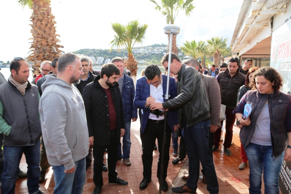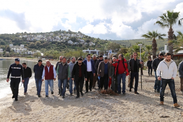 Yağışlı bir havanın hakim olduğu günde yapılan toplantının ardından yağmurun da dinmesiyle Başkan Kocadon, beraberindekiler ve işletme sahipleriyle birlikte sahil şeridinde bulunan işletmelerin sınırlarını inceledi.