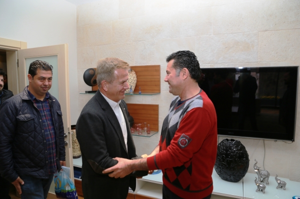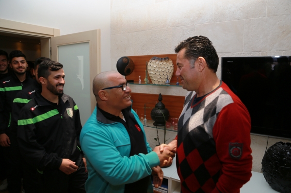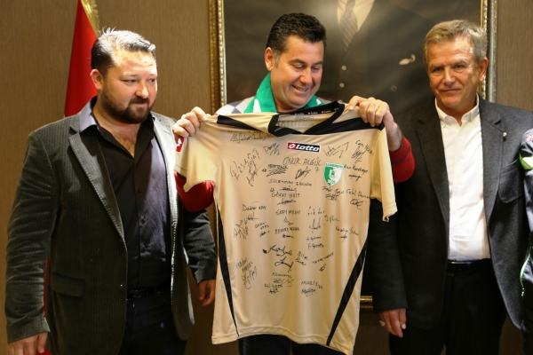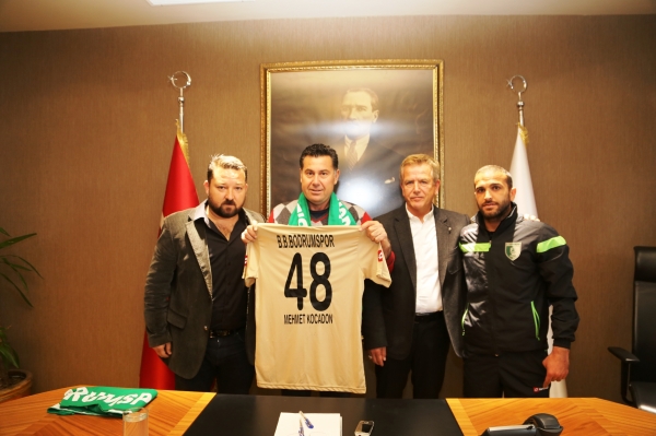 2014-2015 sezonunun tamamlanmasına haftalar kala namağlup unvanını devam ettirerek şampiyonluğunu garantileyen B.B.Bodrumspor’un futbolcuları ve teknik heyeti, Bodrumspor Başkanı Rıza Karakaya ve kulüp yöneticileri birlikte Bodrum Belediye Başkanı Mehmet Kocadon ile makamında bir araya geldi. Üçüncü lige çıkan yeşil beyazlı takımın futbolcuları ve teknik heyet ile yöneticilerini tebrik eden Başkan Kocadon ayrıca her maçta takımlarını yalnız bırakmayan Bodrumspor’un taraftarlarına da teşekkür etti. Sohbet havasında, neşeli bir ortamda geçen ziyarette Mehmet Kocadon, futbolcular ile şakalaşarak şampiyonluk sevincini paylaştı.