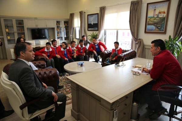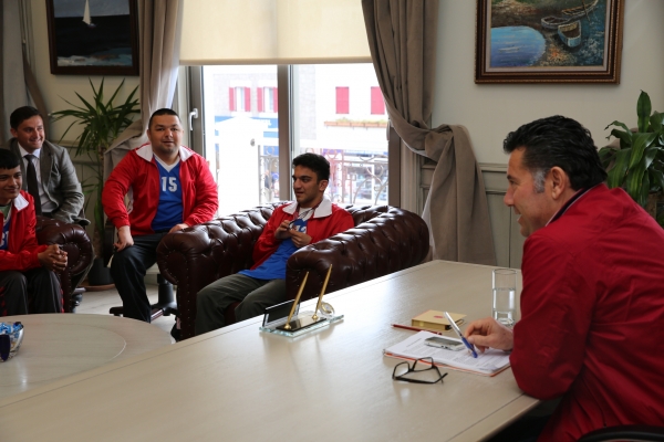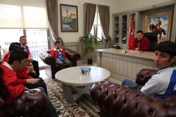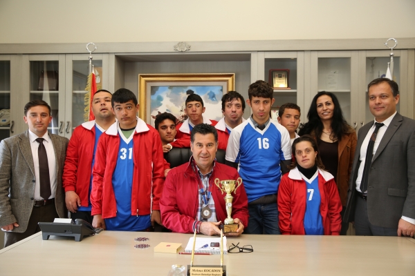 Bodrum Yahşi Özel Çocuklar Spor Kulübünün başarılı sporcuları, Bodrum Belediye Başkanı Mehmet Kocadon'u ziyaret etti.