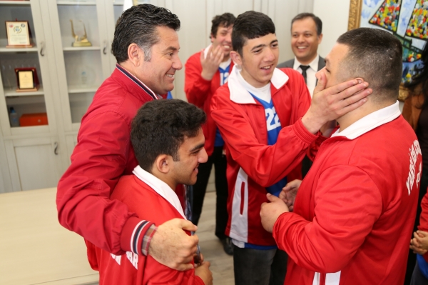 ÖZEL SPORCULAR SEVİNÇLERİNİ BAŞKAN KOCADON İLE PAYLAŞTI