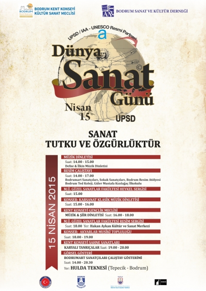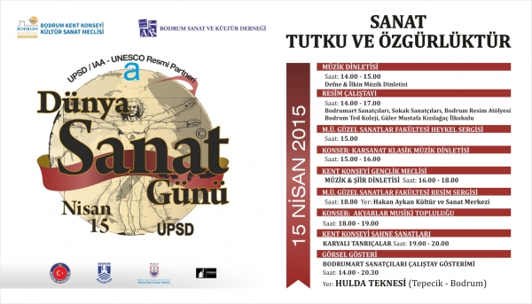 15 Nisan Dünya Sanat Günü nedeniyle Bodrum Belediyesinin destekleriyle Bodrum Kent Konseyi Kültür Sanat Meclisi tarafından bir dizi etkinlik düzenleniyor.