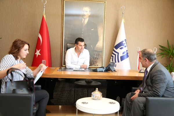 Neşe Doğan İlkokulu Müdürü Ediz Çetin ve Müdür Yardımcısı Pınar Öztürk, Bodrum Belediye Başkanı Mehmet Kocadon'a teşekkür ziyaretinde bulundu. Başkanlık makamında gerçekleşen ziyarette Müdür Çetin; “Belediye Başkanı Mehmet Kocadon, Şubat ayı içerisinde okulumuza gelerek bizleri ziyaret etmişti. Bu ziyaretinde okulumuz hakkında da bilgiler alan Sayın Kocadon, Bodrum Belediyesinin imkanları doğrultusunda yapılacak işleri, ilgili birim müdürlerine not aldırtmıştı. O tarihten bugüne kadar da okulumuzda birçok çalışma yapıldı. Bu nedenle müdür yardımcımız Pınar Hanım ile birlikte Başkan’a okulumuzdaki çalışmalar hakkında bilgi vermek ve kendisine teşekkür etmek istedik. ” şeklinde açıklamada bulundu.