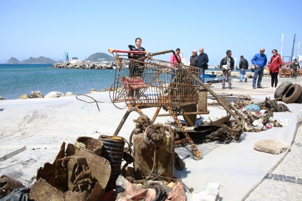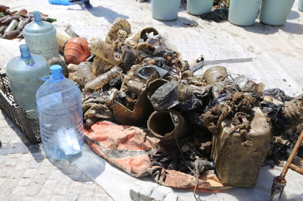 Bodrum Belediyesi Temizlik İşleri Müdürlüğü ekiplerinin yardımıyla Bodrum Belediye A.Ş. Amiral Cafe önüne taşınarak bir araya getirilen atıklar, Çevre Koruma ve Kontrol Müdürlüğünün mühendisleri tarafından ayrıştırılarak ölçümlendi. Çalışmalar kapsamında deniz dibinden; 250 kg. metal, 55 kg. cam, 107 kg. plastik, 132 kg. araç lastiği, 43 kg. tekstil atığı (ip, bez vb.) olmak üzere toplam 587 kilogram atık çıkarıldı. Atıklar daha sonra belediye personeli tarafından kamyon ve traktörlere yüklenerek Ortakent’te yer alan Bodrum Belediyesi Deniz Dibi Temizliği Proje Alanı’na taşındı.