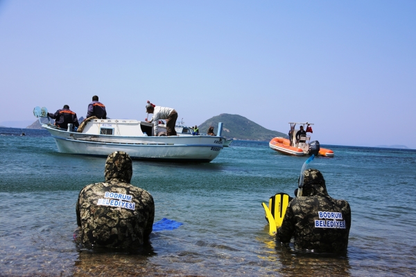 “Denize en çok MAVİ yakışır!” sloganıyla 15 Mart – 05 Haziran 2015 tarihleri arasında Bodrum Belediyesi tarafından düzenlenen “Bodrum Deniz Dibi Temizlik Kampanyası” bu hafta sonu Bodrum’un Turgutreis Mahallesi’nde devam etti. Bodrum Belediyesi personelinden oluşan gönüllü 10 dalgıcın yardımıyla yapılan çalışmalar, sabah saatlerinde başladı. Bodrum Belediyesi Birim Müdürleri ve Birim Sorumlularının da takip ettiği etkinliğe, Turgutreisli vatandaşlar da katılarak destek verdi. Turgutreis D-Marin görevlileri ise yaptığı çalışmalarla belediye ekiplerine destekte bulundu.