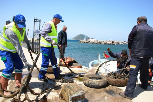 BELEDİYE DALGIÇLARI TURGUTREİS'TE DENİZ DİBİNİ TEMİZLEDİ