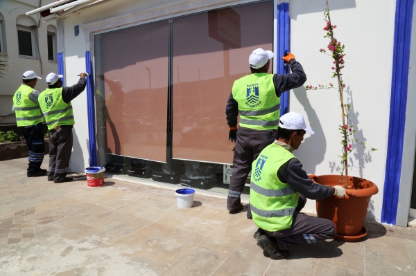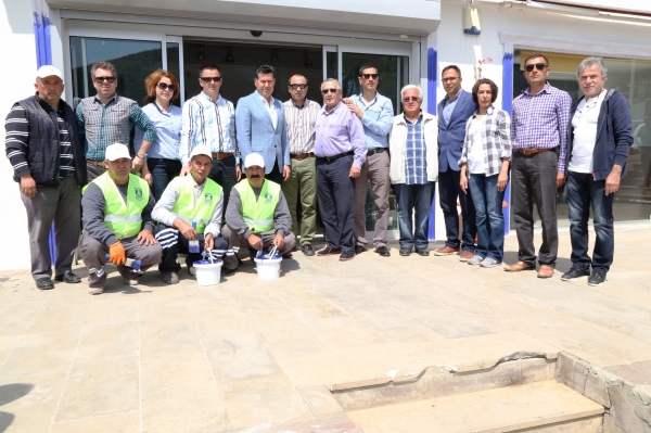 Bodrum Belediyesi ve BESİAD tarafından ortaklaşa yürütülen çalışma ile Bodrum Merkez’de belirlenen cadde ve sokaklar üzerindeki işletmeler, kentsel kimliği korumak amacıyla ‘Bodrum Mavisi’ne bürünüyor.