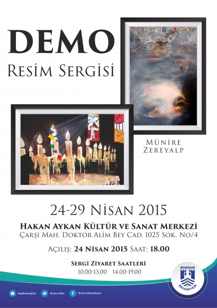 Bodrum Belediyesi Hakan Aykan Kültür ve Sanat Merkezi, 24-29 Nisan 2015 tarihleri arasında Münire Zereyalp’in “Demo” adlı resim sergisine ev sahipliği yapacak.