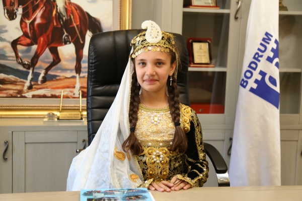 Mahinur Cemal Uslu Ortaokulu'ndan öğrenciler ile Azerbaycan'dan gelen misafir öğrenciler ve görevli öğretmenler, 23 Nisan Ulusal Egemenlik ve Çocuk Bayramı öncesi Bodrum Belediye Başkanı Mehmet Kocadon'u makamında ziyaret etti. Bodrum Belediyesi İmar ve Şehircilik Müdürlüğü Başkanlık Makamında gerçekleşen ziyarette Mahinur Cemal Uslu Orta Okulu 7/C sınıfından Deniz Yalçın ile Azerbaycan'dan gelen misafir okuldan 5. sınıf öğrencisi Sebina Xalilova, Bodrum Belediye Başkanı oldu.