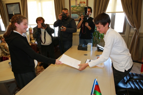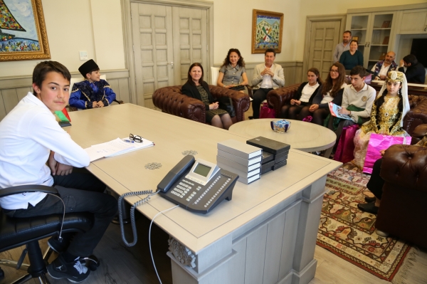 Biri Türk biri Azeri öğrenciler, Başkan Kocadon’un koltuğuna oturdu
