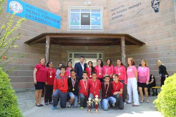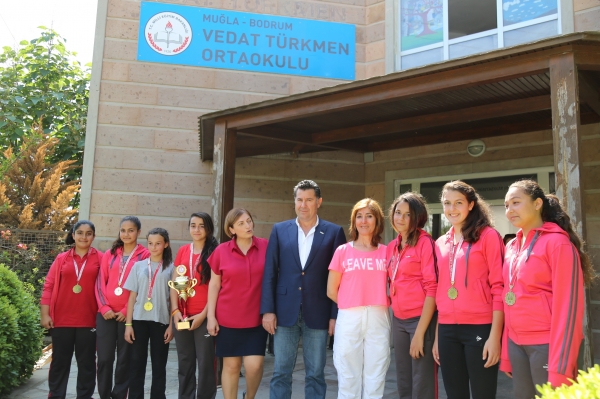 Vedat Türkmen Ortaokulu Müdürü Derya Güven ise gerek Muğla gerekse Manisa'daki şampiyonalar için okullarına destek olan Bodrum Belediye Başkanı Mehmet Kocadon'a okul adına teşekkür etti. Bodrum Belediyesi olarak eğitim kurumlarına her zaman destek olmaya çalıştıklarını belirten Kocadon da; “Bodrum ismi çok büyük isim ve haber değeri de çok fazla olan bir yer. Özellikle Anadolu halkımız Bodrum'a çok meraklı. Biz yöneticilerin de Bodrum ismini en iyi şekilde Anadolu'ya duyurmamız lazım. Bu okul ile olabilir, bir folklor ekibi ile olabilir ya da bir spor kulübümüz ile olabilir. Bir yönetici olarak ben bu faaliyetlerde her zaman çocuklarımızın yanında oldum ve bundan sonra da olmaya devam edeceğim. Eğitimin küçük yaşta verileceğine inanan bir belediye başkanı olarak okullarımıza imkanlarımız doğrultusunda her zaman destek olacağım.” şeklinde konuştu.