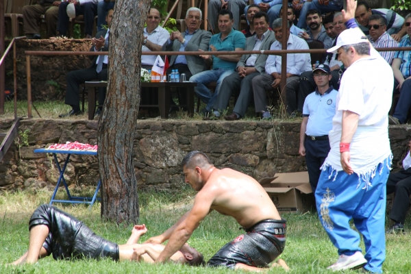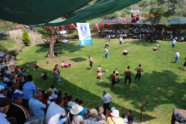 Güreş ağalığı ihalesini Çömlekçi Mahallesi Muhtarı Mustafa Oral’ın kazandığı, akşam saatlerine kadar süren güreşler nefes kesti.