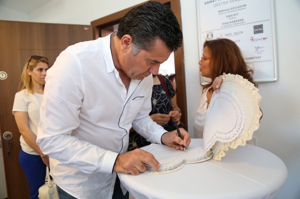 Engelli vatandaşların fiziksel ve düşsel becerilerini geliştirmek amacıyla kurulan Sevgi Sanat Atölyesi'nin açılışını yapan Bodrum Belediye Başkanı Mehmet Kocadon, kendi kalemiyle atölyenin anı defterine düştüğü notta; "Bu güzel atölye, engelleri aşmanın inanmak ve sevgi olduğunu göstermiştir." ifadelerini kullandı.