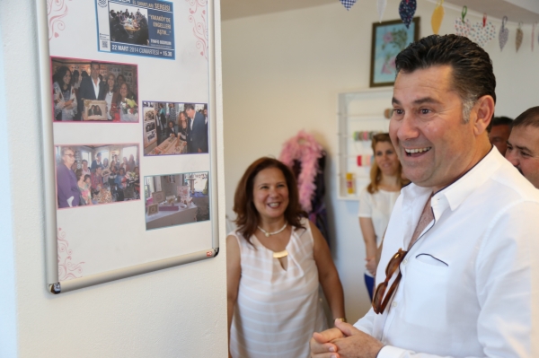 Açılışın sonuna doğru Hilal Karakaş, atölyenin yapımında kendilerine destek olan Bodrum Belediye Başkanı Mehmet Kocadon'a bir teşekkür plaketi takdim etti. Plaket için teşekkür eden Başkan Kocadon engelli vatandaşlarla da tek tek ilgilenip sohbet ederek, en son, günün anısına hep birlikte hatıra fotoğrafı çekildi.