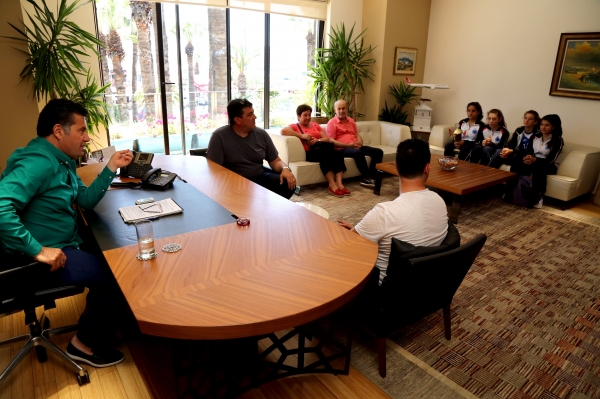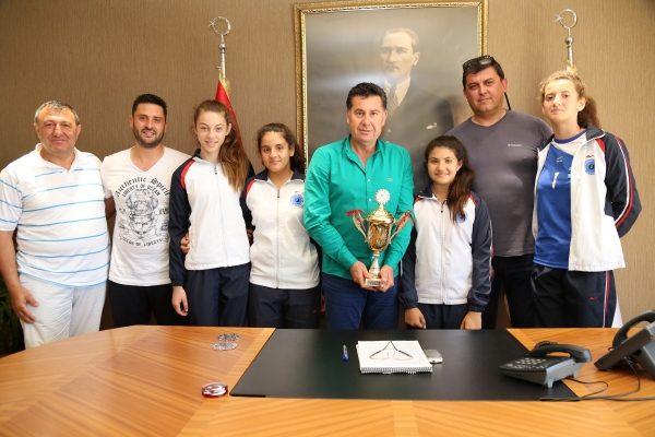 Bodrum İhtisas Spor Kulübü Kız Voleybol Takımı’nın şampiyon sporcuları, Kulüp Başkanı Cem İpçi ve antrenör Sezer Gezginci ile birlikte Bodrum Belediye Başkanı Mehmet Kocadon’u makamında ziyaret etti. Sporcuları tek tek tebrik eden Başkan Kocadon, sporculara başarılarının devamını diledi.