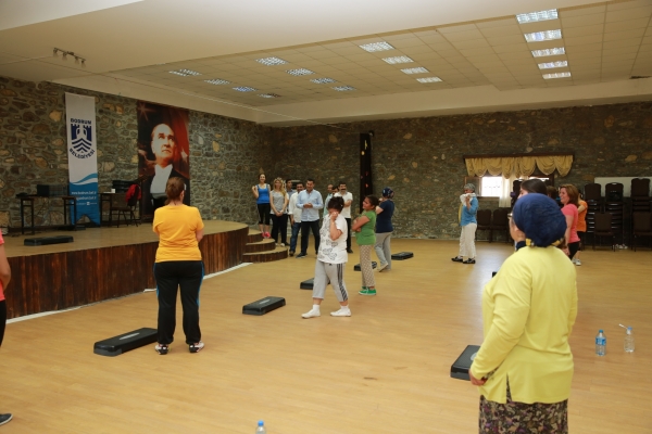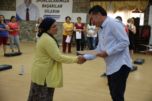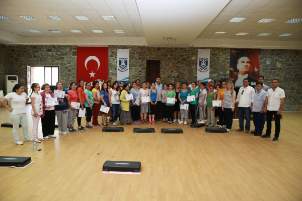 Bodrum Belediye Başkanlığı 2015 kış ve bahar dönemi step-aerobik kursuna katılan bayanlara katılım belgeleri verildi.