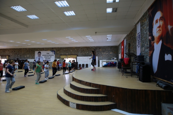 Bodrum Belediyesinin sosyal sorumluluk projesi kapsamında ücretsiz olarak verilen spor kursları arasında Ortakent ve Gümbet mahallelerinde yapılan pilates-yoga kursları da devam ediyor. Mumcular Mahallesi’nde sona eren step-aerobik kursunun ardından yaz döneminde büyükler için pilates-yoga ve çocuklar için halkoyunları ile ritmik jimnastik kursları açılacak.