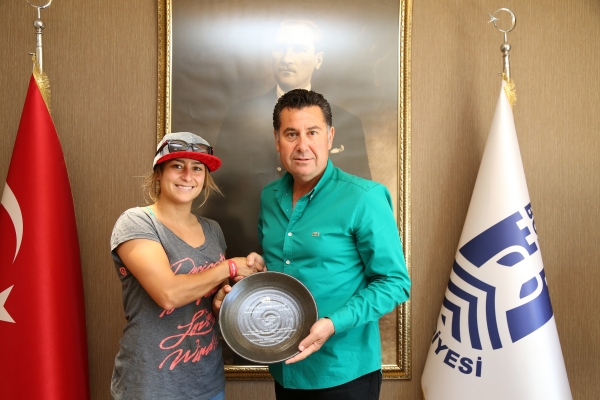 Lena Erdil, Güney Kore’nin Ulsan şehrinde gerçekleşen 2015 PWA Windsurf Dünya Kupası’nın ilk ayak yarışında aldığı dünya ikinciliği kupası ile Bodrum Belediye Başkanı Mehmet Kocadon’u ziyaret etti.