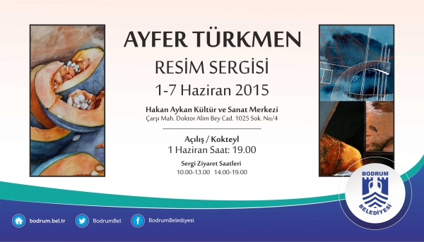 Bodrum Belediyesi Hakan Aykan Kültür ve Sanat Merkezi, 1-7 Haziran 2015 tarihleri arasında Resim Öğretmeni Ayfer Türkmen’in ilk kişisel resim sergisine ev sahipliği yapacak.