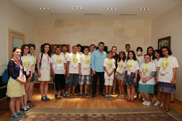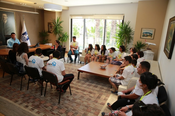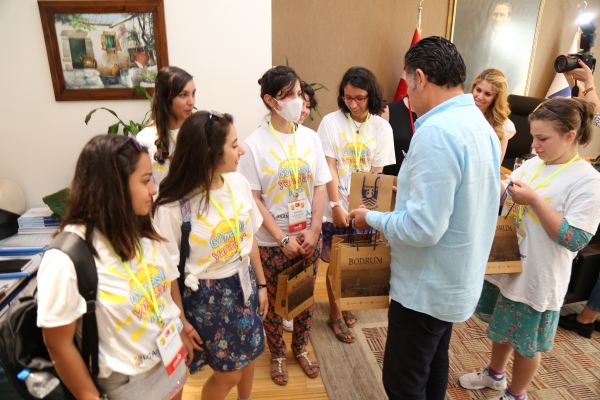 Ağrı, Malatya, Gaziantep, İzmir, Ankara, İstanbul, Eskişehir, Uşak ve Şanlıurfa'dan Bodrum'a gelen gençleri kapıda karşılayan Başkan Kocadon gençlerle bir süre sohbet etti.