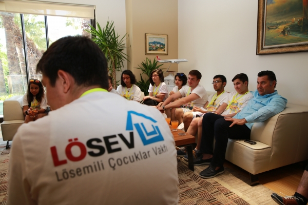 Lösemili Çocuklar Vakfı (LÖSEV)'nda tedavi gören ve hastalığı yenen öğrenciler Bodrum Belediye Başkanı Mehmet Kocadon'u ziyaret etti.