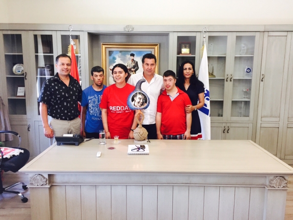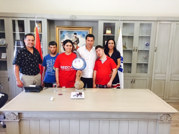 Yahşi Özel Eğitim Uygulama Merkezi ve İş Uygulama Merkezi yetkilileri ve öğrenciler Bodrum Belediye Başkanı Mehmet Kocadon’u makamında ziyaret etti.