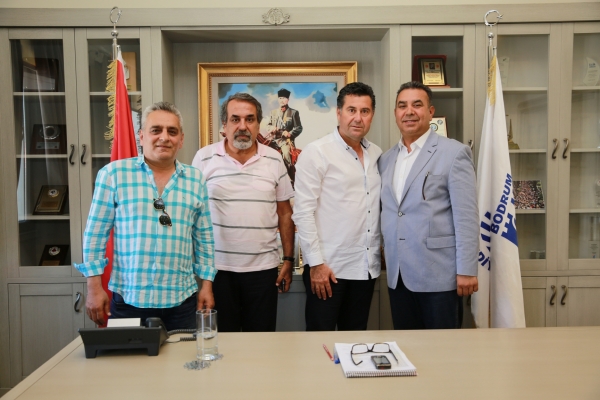 Adana Büyükşehir Belediyesi adına etkinlikler için ilçeye gelen Sinan Gül, Bodrum Adanalılar Derneği Başkanı Ayhan Ongun ile birlikte Bodrum Belediye Başkanı Mehmet Kocadon’u makamında ziyaret etti.