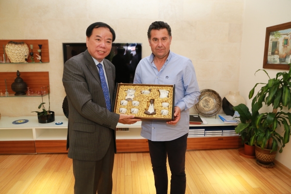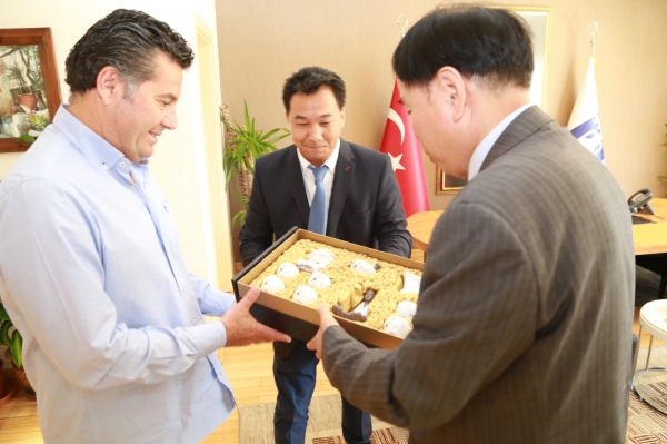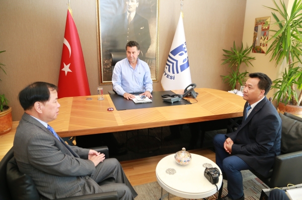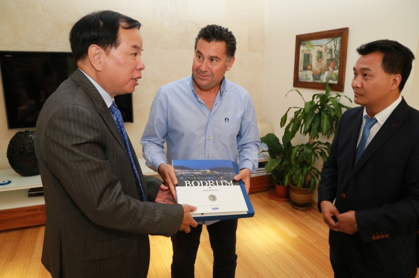 G-20 Liderler Zirvesi öncesinde Bodrum'da düzenlenen toplantı için İzmir’den gelen Çin Halk Cumhuriyeti İzmir Başkonsolosu Su Gaochao, Bodrum Belediye Başkanı Mehmet Kocadon’u makamında ziyaret etti.