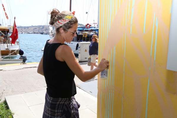 Türkiye'de Graffitinin öncülerinden olan ve 80'li yıllardan beri duvar boyadığını ifade eden Turbo lakaplı Tunç Dindaş, Bodrum'a seneler önce geldiğini belirterek, “Ben tatil için 1990'da Bodrum'a geldim. Bodrum çok güzeldi. Mavi denizi, yeşil çevresi, manzarası çok çok güzeldi. Fakat beyazın fazla olması beni çok rahatsız etmişti. Çok fazla beyaz ev vardı ve şehirde daha farklı renklerin de olması gerektiğini düşünmüştüm. Biraz geç de olsa Bodrum Belediyesinin destekleriyle şu anda bazı yerlere, farklı renklerle çalışmalar yaptık. Bodrum'u tatil yerinden çok aslında küçük bir şehir olarak görüyorum. Bu duvar boyama sanatı da genellikle şehirlerde uygulanmakta. Yaptığımız işin Bodrum'a yakıştığını düşünüyoruz ve farklı yerlerde çalışmalarımıza devam edeceğiz.” dedi.