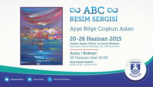 Bodrum Belediyesi Hakan Aykan Kültür ve Sanat Merkezi, 20-26 Haziran 2015 tarihleri arasında ressam Ayşe Bilge Coşkun Aslan'ın “ABC” isimli resim sergisine ev sahipliği yapacak.