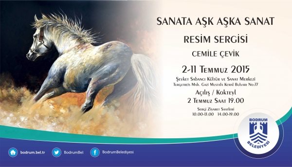 Bodrum Belediyesi Şevket Sabancı Kültür ve Sanat Merkezi, 2-11 Temmuz 2015 tarihleri arasında Cemile Çevik’in “Sanata Aşk Aşka Sanat” resim sergisine ev sahipliği yapacak.