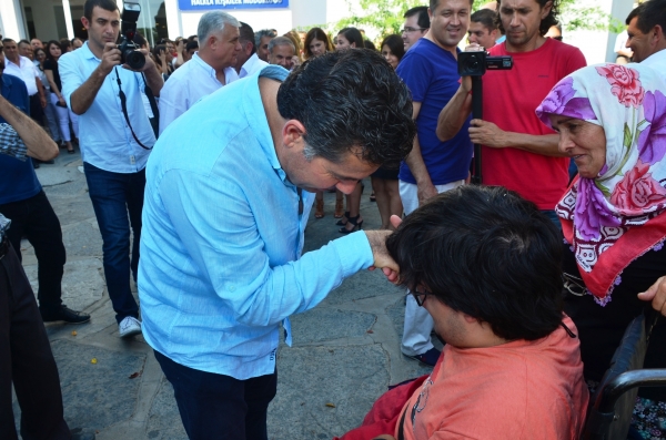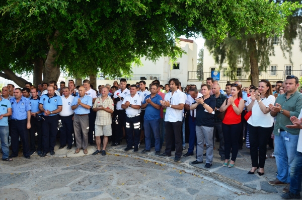 Konuşmasının ardından belediye önünde toplanan personel ile el sıkışan Bodrum Belediye Başkanı Mehmet Kocadon, ayrı ayrı her bir personelinin bayramını kutladı.
