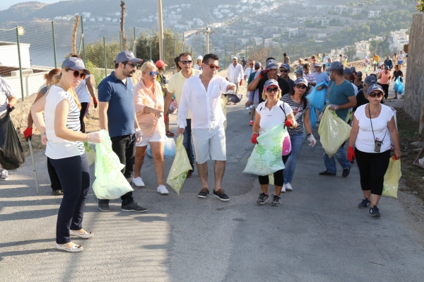 Yol boyunca doğaya gelişi güzel atılmış sigara izmariti, pet şişe ve kağıt gibi atıkları vatandaşlarla birlikte toplayan Bodrum Belediye Başkanı Mehmet Kocadon ise birey olarak en kolay yolun çöp atmak olduğunu belirterek, “Öncelikle çevreye olan duyarlılığından dolayı Yonca Hanım’a teşekkür ediyorum. Eleştirmek çok kolay, her zaman eleştiriliyoruz ama bu çöpleri kendimizin attığını unutmayalım. Arkadaşlarımız 24 saat görev yapsa da değişken nüfustan dolayı zorlanıyoruz. Ben, tatile gelen Anadolu halkının; mümkün olduğu kadar başka Bodrum olmadığını, doğayla barışık olmamız gerektiğini, atılan çöplerin bir gün kendisini de rahatsız edeceğini bilmesini istiyorum. Bodrum'u kirletip gitmek marifet değil. Bodrum'u gelecek nesillere, çevresi ve doğasıyla emanet etmemiz lazım ve onların da bu güzellikleri görmesi lazım. Ayrıca mavi kapak kampanyaları da devam ediyor ve bu kampanyalarla engelli dostlarımıza destek veriyoruz. Temizliği başka birilerinden beklemekle ya da ‘İşleri ne? Gelip toplasınlar’ demekle bu işler olmuyor. Çünkü kirlettiğimiz doğa, gün gelecek bizi de kirletecek. Geçtiğimiz günlerde deniz dibi temizliği yaptık ve denizden çıkan malzemeleri gördük. Çöpü denize ya da sokağa atıvermek, bir insan için en kolay yolu seçmektir. Halkımızın biraz daha duyarlı olmasını; eğitim - öğretim dönemi başladığında ise okullarda, temizlik eğitimlerinin verilmesini istiyorum. Bizler bu konuda da elimizden gelen her şeyi yapacağız.” dedi.