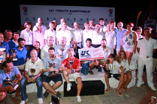 3 gün süren yarışlarda dereceye giren yelkenciler, aynı günün akşamı Milta Bodrum Marina’da bulunan Osmanlı Tersanesi’nde düzenlenen ödül töreni ile kupalarını aldı. Törene Sahil Güvenlik Komutanı Tüm Amiral Hakan Üstem, Bodrum Belediye Meclis Üyesi Güneri Günaydın, TYF Başkanı Mehmet Serhat Belli, Milta Bodrum Marina Genel Müdürü Ömer Karacalar, TYF Yetkilileri, BAYK Yetkilileri, antrenörler ve sporcular katıldı. 2015 Yat Türkiye Şampiyonu Arcora – 4KMS4RC / Günkut Ayvazoğlu, törende ekibiyle birlikte kupasını aldı.