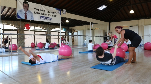 Bodrum Belediye Başkanı Mehmet Kocadon, zihinsel engelli öğrenciler için Bodrum Belediyesi Ortakent Cumhuriyet Parkı Aynalı Salon’da verilen Pilates ve Yoga derslerini ziyaret ederek öğrencilerle buluştu.