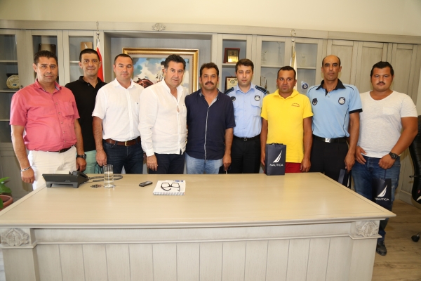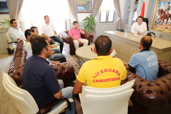 Bodrum Belediye Başkanı Mehmet Kocadon, yaz başında gerçekleşen “Bodrum Deniz Dibi Temizlik Kampanyası”na katılan Bodrum Belediyesi'nin dalış ekibinde görevli dalgıçları, makamında kabul etti.