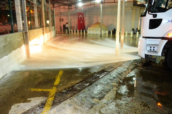 İlçe genelinde düzenli olarak gerçekleştirilen temizlik çalışmaları kapsamında Bodrum pazaryeri yıkandı. Cuma pazarının ardından gece geç saatlerde pazarı yıkayan ekipler, yıkama suyuna ayrıca hayvanlara ve çevreye zarar vermeyen dezenfektan da ekledi. Yıkama işlemi öncesinde bölgenin çevre temizliğini de tamamlayan ekipler daha sonra yıkama işini gerçekleştirdi.
