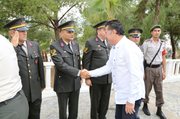 Bodrum ilçe protokolü, Kurban Bayramının ilk günü düzenlenen bayramlaşma töreninde vatandaşların bayramını kutladı.