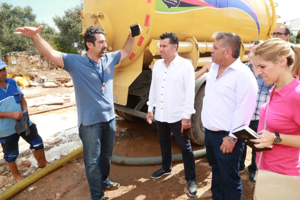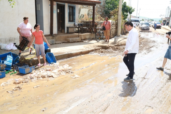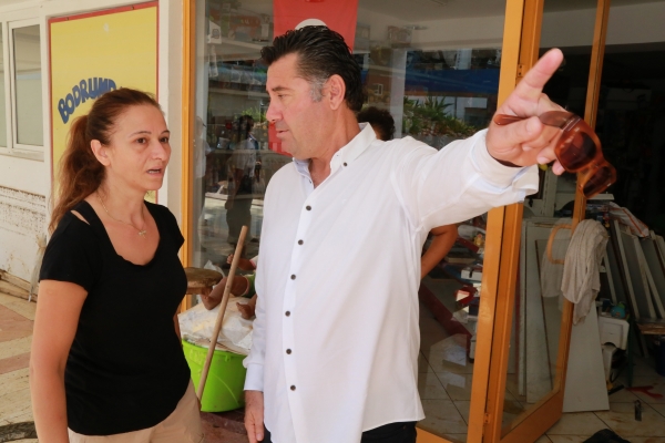Afet anından itibaren çalışmaları takip eden Bodrum Belediye Başkanı Mehmet Kocadon, sahada çalışmaları koordine eden Bodrum Belediye Başkan Yardımcısı Taner Uslu ile birlikte incelemelerde bulundu.