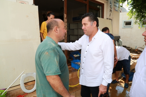 Bodrum Belediye Başkanı Mehmet Kocadon, Bodrum’un büyük bir afetle karşı karşıya kaldığını ifade ederek, “Bildiğiniz üzere Kurban Bayramı arifesinde Salı günü başlayan şiddetli yağmur, Bodrum'da müthiş bir afete neden oldu. Bu afetin ardından bugüne kadar Bodrum Belediyesi ekipleri müthiş bir performans gösterdiler. Yaşanan afette çok şükür bir can kaybı yaşanmadı. Bunun yanında Kurban Bayramının gelmesiyle beraber normal hayat Bodrum'da devam ediyor, Anadolu'dan gelen misafirlerimiz tatillerini sürdürüyorlar. Ben de bugün ekiplerim ile beraber çalışmaları yerinde takip ettim. Ayrıca yaşanan afette zarar gören ailelerimiz ile esnafımıza geçmiş olsun ziyaretinde bulundum. İşyeri ve ev sahiplerimiz su baskınları sonucunda çok mağdurlar. Bodrum Belediyesi olarak elimizden ne geliyorsa yapacağız, bu yaraları saracağız ve üzerimize düşen her görevi seve seve yerine getireceğiz.” şeklinde konuştu.