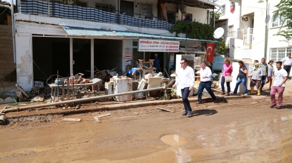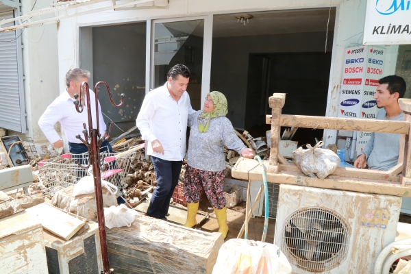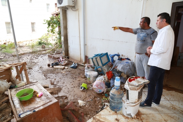 Konacık'taki incelemelerinin ardından OASİS Alışveriş Merkezinin zemin katındaki işyerleri hasar gören esnafı da ziyaret eden Başkan Kocadon, esnafı sigorta ve hasar tespiti konusunda uyardı. Esnafın hukuksal destek talebinin karşılanması için gerekli çalışmaların yapılması talimatını veren Başkan, daha sonra Yokuşbaşı Mahallesi’ne geçti. Burada evleri ve işyerleri tamamen sular altında kalan vatandaşlarla bir araya gelen Başkan Kocadon, yaşanan afet sonrası gerçekleşen çalışmaları inceledi.