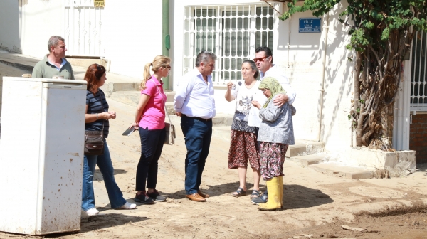 İlk olarak Konacık Mahallesi’nde Anadolu Lisesinin alt kısmında ve ana caddede evleri ve işyerleri sel suları altında kalan vatandaşları ziyaret eden Başkan Mehmet Kocadon, vatandaşlara geçmiş olsun dileklerini iletti. Evleri ve işyerleri tamamen sular altında kalan vatandaşlarla sohbet eden Başkan Kocadon, hasar tespit çalışmalarının sürdüğünü, Bodrum Belediyesi ekiplerinin de mağduriyetlerin giderilmesi için çalışmalar yaptıklarını belirtti.